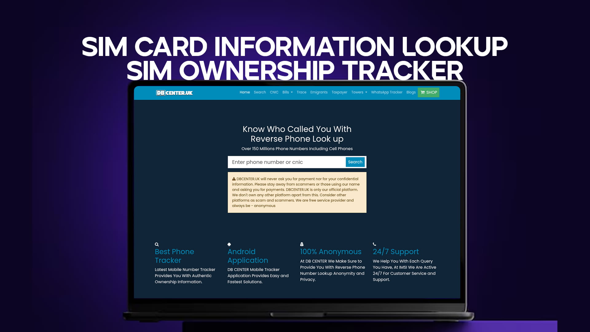 DB Center delivers exactly that. With over 150 million phone numbers in its database — including cell phones — combined with community-powered spam reports and a simple, fast interface, DB Center is one of the most comprehensive and user-friendly SIM ownership tracking tools available today.